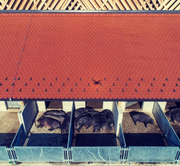 Taj slavonski građevinski gen potvrdio je još jedan slavonsko, hrvatski, reprezentativni izvozni proizvod, naš proslavljeni nogometaš DOMAGOJ VIDA. Domagoj je sa svojim prijateljima “Sinovi ravnice“ u blizini Donjeg Miholjca sagradio farmu za uzgoj domaćih crnih svinja. Farma i u farmi domaće crne svinje pokrivene su glinenim Biber crijepom tvrtke CREATON.